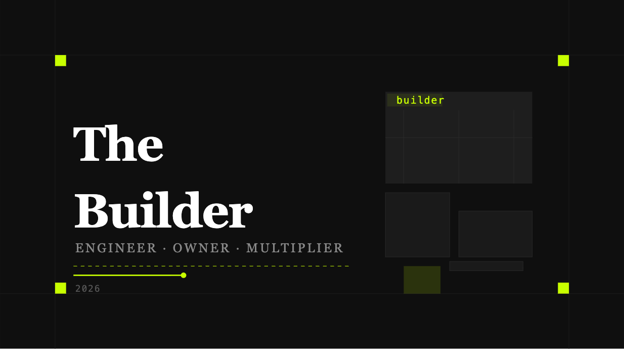 A Builder owns their product end to end, including the parts that used to belong to someone else. Architecture, yes. But also user insight, documentation, metrics, and distribution.